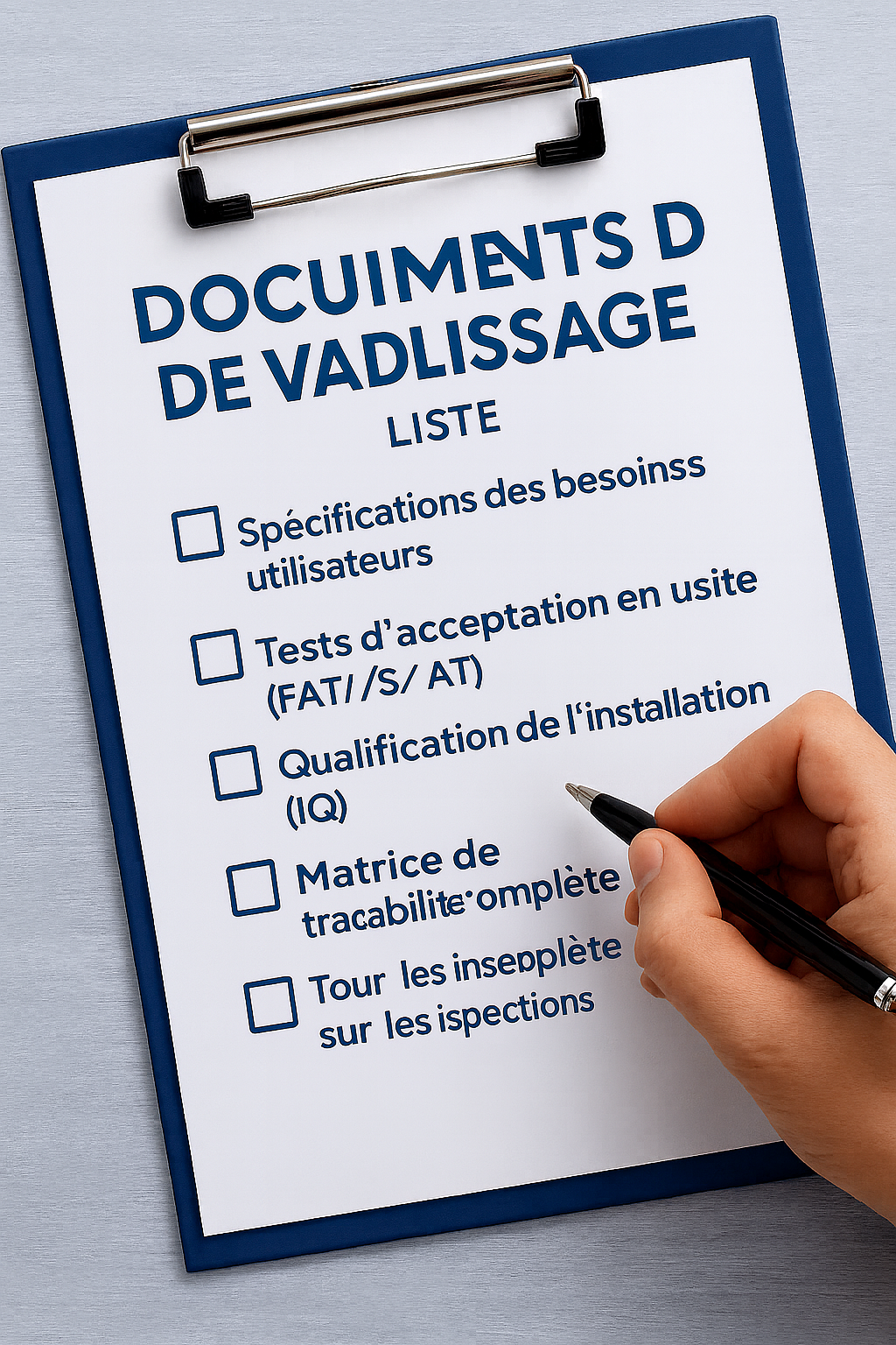 Validation Complète de Processus – Réalisation complète des protocoles URS, FAT, SAT, IQ, OQ, PQ, avec une documentation prête pour audit et une conformité fluide lors des inspections réglementaires.